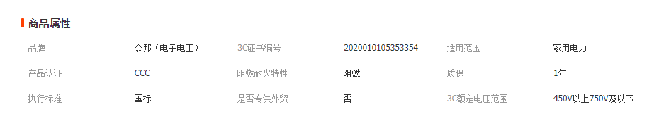 眾邦電線電纜 ZR-BV1.