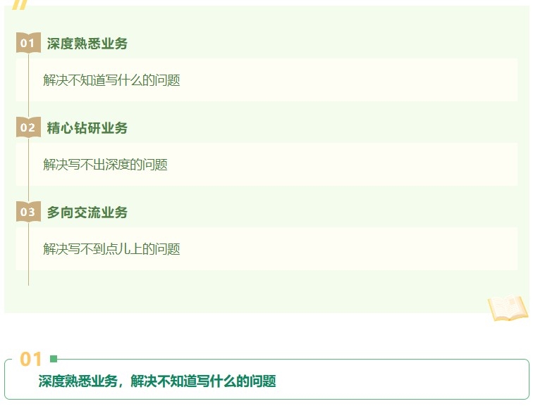 寫出好的業(yè)務(wù)交流文章,是一個循序漸進的過程。某種程度上說,這與業(yè)務(wù)能力提升是一個相輔相成、相互促進、相得益彰的過程。業(yè)務(wù)能力得到提升,工作經(jīng)驗總結(jié)才有活水源頭;工作經(jīng)驗及時總結(jié),又可以反過來指導(dǎo)實踐、推動工作。作為精研業(yè)務(wù)的成果之一,寫業(yè)務(wù)交流文章本身也有一個精研、精進的問題。具體怎樣寫好業(yè)務(wù)交流文章呢?